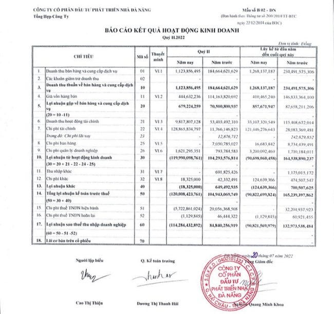 CTCP Đầu tư phát triển Nhà Đà Nẵng (Mã CK: NDN) vừa công bố Báo cáo tài chính quý II/2022 với kết quả lỗ 114,28 tỷ đồng, nguyên nhân chủ yếu do đầu tư chứng khoán.