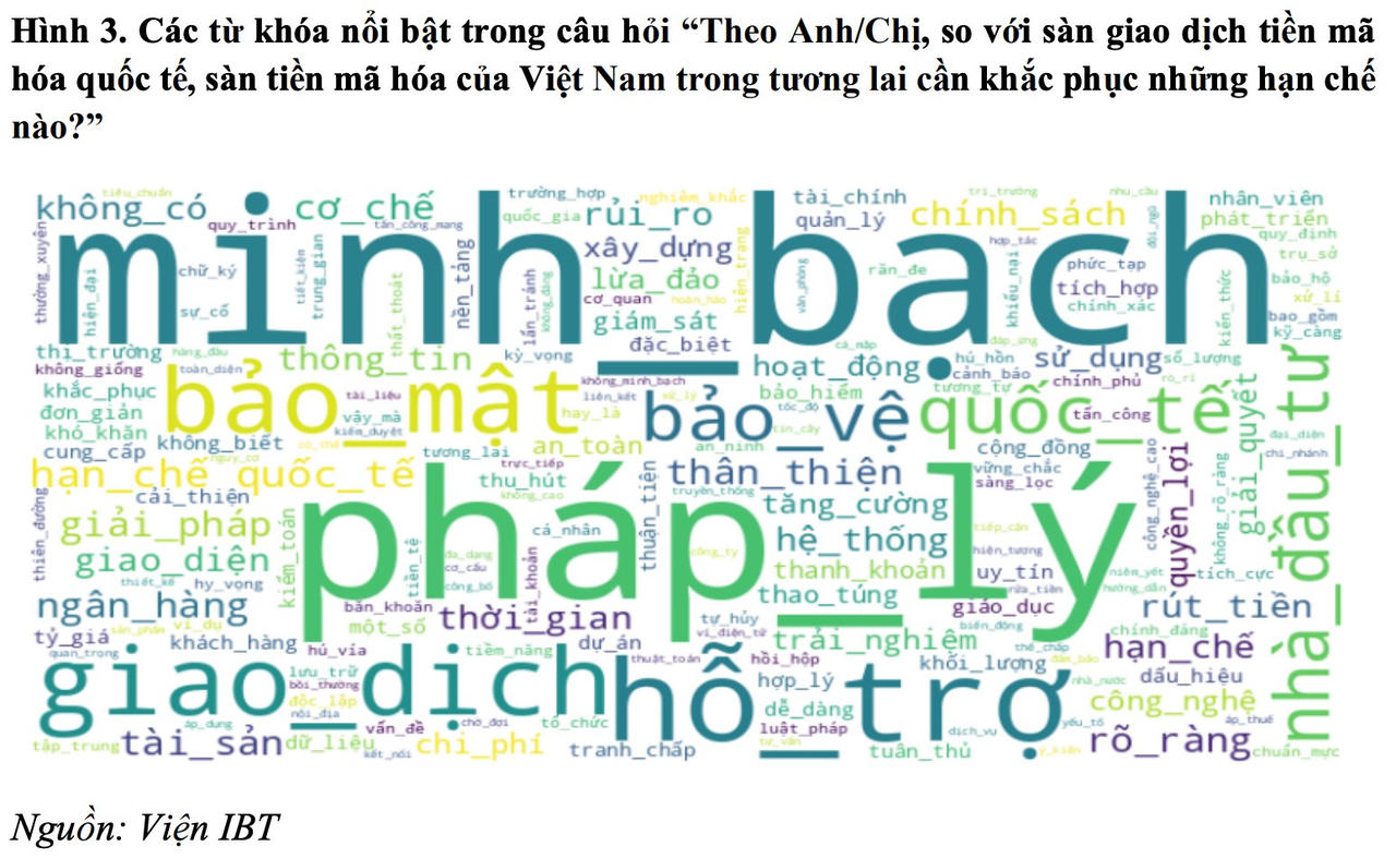 Khi được hỏi về những hạn chế cần khắc phục nếu Việt Nam triển khai sàn giao dịch tiền mã hóa, nhà đầu tư nhấn mạnh từ khóa “minh bạch” – một yêu cầu được nhắc đến nhiều nhất trong khảo sát. Tính minh bạch được kỳ vọng thể hiện trên hai nhóm chính: pháp lý và hệ thống giao dịch.