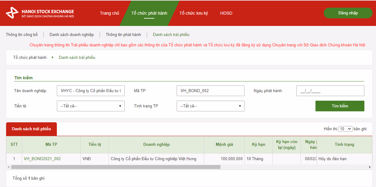 Mặc dù đã quá hạn thanh toán mã trái phiếu VH_BOND_002 do CTCP Đầu tư Công nghiệp Việt Hưng phát hành nhưng cho đến nay, nhiều nhà đầu tư vẫn chưa nhận được khoản thanh toán tiền gốc và lãi trái phiếu.