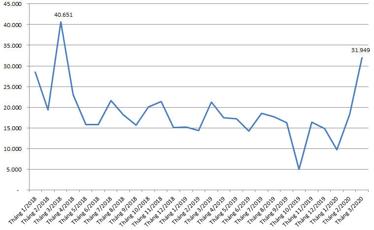 Số lượng tài khoản nhà đầu tư nước ngoài tại thời điểm 31/3/2020 đạt 32.878 tài khoản, tăng 191 tài khoản so với tháng trước. Trong đó, tài khoản cá nhân nước ngoài ở mức 29.114 tài khoản (tăng 167 tài khoản).