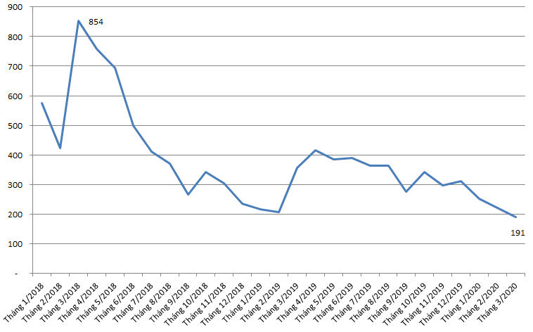 Theo thống kê, lượng tài khoản tăng thêm của nhà đầu tư nước ngoài trong tháng 3 là thấp nhất kể từ thời điểm tháng 5/2017.