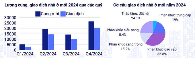 Theo thống kê của VARS, cả năm 2024, toàn thị trường ghi nhận hơn 47.000 giao dịch bất động sản thành công, tương đương với tỷ lệ hấp thụ đạt 72%. Hơn 70% lượng giao dịch sơ cấp được đóng góp bởi nhu cầu đầu tư. Trong đó, có một lượng đầu cơ nhất định.
