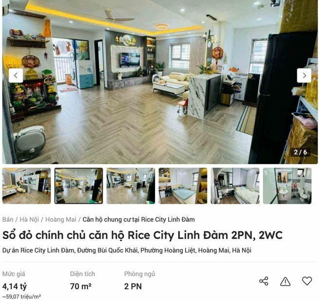 Theo khảo sát trên Batdongsan.com.vn, giá một căn hộ tại dự án Rice City Linh Đàm, đã bàn giao từ năm 2015, hiện đã chạm mức gần 60 triệu đồng/m2, tương đương 4,14 tỷ đồng cho căn hộ có diện tích 70m2. Không chỉ riêng Rice City, giá bán thứ cấp của nhiều dự án nhà ở xã hội khác tại Hà Nội cũng tăng mạnh, nhiều nơi vượt mốc 40 triệu đồng/m2.