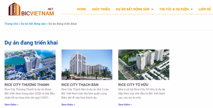 Công ty cổ phần BIC Việt Nam cũng là chủ đầu tư của hàng loạt các dự án nhà ở xã hội như Rice City Trung Văn, Rice City Linh Đàm, Rice City Long Biên,…