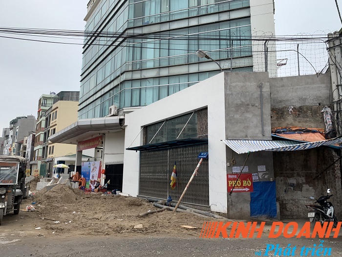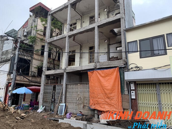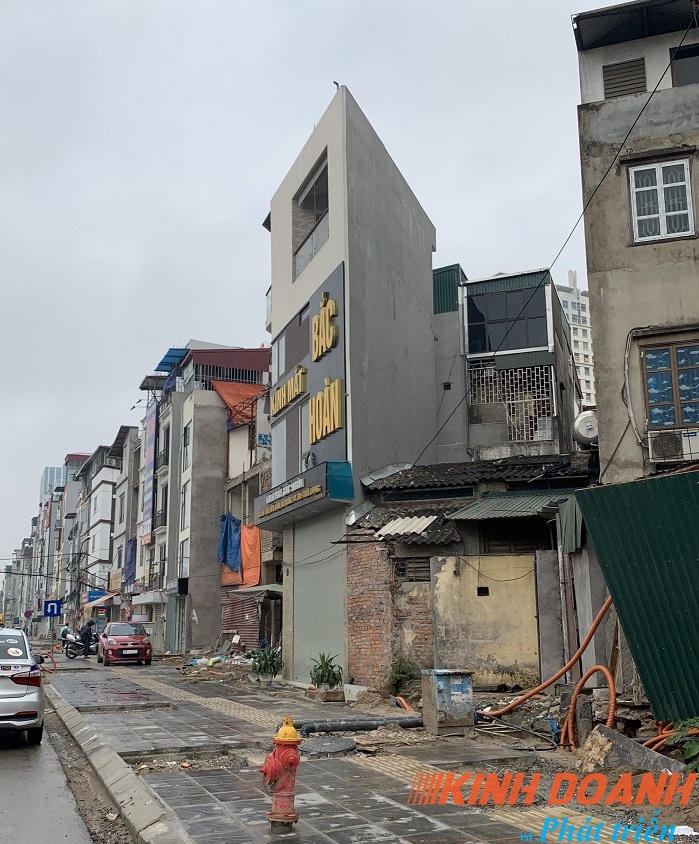 Một ngôi nhà đang được hoàn thiện trên đường Minh Khai, chủ nhà cho biết đang đốc thúc thợ làm nhanh để tiến hành cho thuê sớm. Có thể thấy ngôi nhà có chiều ngang mặt tiền đẹp nhưng chiều sâu rất nông.
