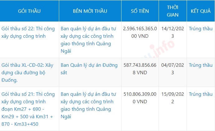 Cũng trong tháng 9/2022, Thiết bị xây dựng công nghệ Nam Anh cũng trúng thầu gói thầu số 21 thi công xây dựng công trình thuộc dự án cầu và đường nối từ trung tâm huyện lỵ Sơn Tịnh đến huyện Tư Nghĩa (Cầu Trà Khúc 3) do Ban quản lý dự án đầu tư xây dựng các công trình giao thông tỉnh Quảng Ngãi mời thầu. Giá trúng thầu là 758,7 tỷ đồng.