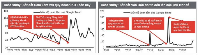 Về quy hoạch có thể kể đến đợt sốt đất Vân Đồn trước thông tin lên đặc khu kinh tế. Batdongsan.com.vn trích dẫn dữ liệu google trend cho thấy sốt đất hình thành khi có thông tin quy hoạch Khu kinh tế Vân Đồn vào đầu năm 2018 sau đó đạt đỉnh vào khoảng tháng 7/2018 trước thông tin 3 nhà đầu tư đề xuất dự án cao cấp về hạ tầng du lịch, nghỉ dưỡng. Đợt sốt này nhanh chóng hạ nhiệt trước thông tin Quốc hội biểu quyết lùi thông qua luật Đặc khu.