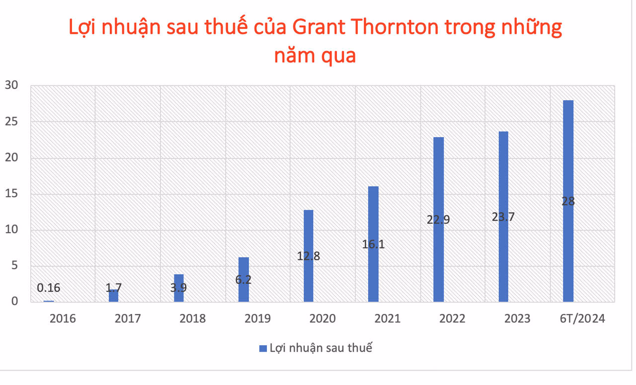 Năm 2024, Grant Thornton đặt kế hoạch doanh thu 130 tỷ đồng; lợi nhuận sau thuế đạt 8 tỷ đồng. Như vậy, nửa đầu năm nay, Grant Thornton đã vượt kế năm cả doanh thu và lợi nhuận.