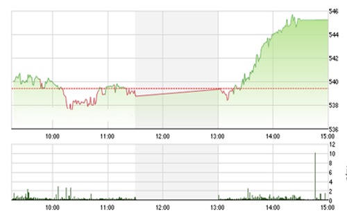 VN-Index đã test thành công và vượt qua được ngưỡng kháng cự 543 điểm, sau 4 phiên tích lũy bên dưới ngưỡng này. Do đó, nhiều khả năng chỉ số này sẽ tiến lên test lại vùng 553-557 điểm, là vùng hội tụ của hai ngưỡng Fibonacci 38.2% và 61.8%. Do đó, chưa thể kỳ vọng nhiều vào khả năng đi xa của nhịp tăng này.