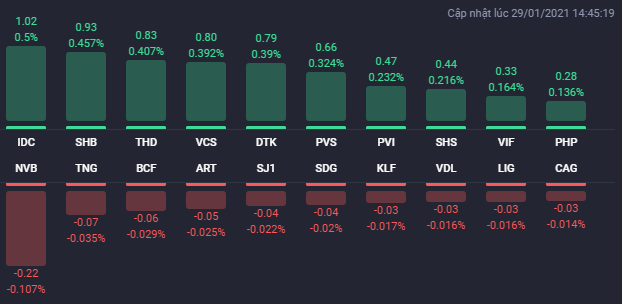 Tại nhóm cổ phiếu bất động sản vừa và nhỏ, các cổ phiếu như PFL, IDC, OCH, HPX, SZL hay SJS cũng được kéo lên mức giá trần. Bên cạnh đó, nhiều mã bất động sản thanh khoản cao cũng tăng giá mạnh gồm: CEO (8,9%), PDR (6,3%), NDN (5,1%), D2D (4,8%), VCR (4,4%), HDG tăng (3,1%), CRE (3,1%)…