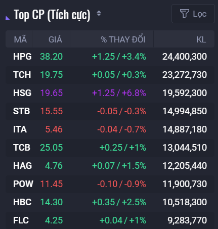 Tại nhóm cổ phiếu bất động sản, hàng loạt mã như DIH, OCH, BII, TN1, FIT, DTA, HAR, QCG, VRC hay DRH đều được kéo lên mức giá trần. Bên cạnh đó, các mã có thanh khoản cao như HPX, IDJ, HDC, ASM, CRE, TDH... cũng đồng loạt tăng giá. HPX tăng 6,6%, IDJ tăng 5,8%, HDC tăng 4,4%, ASM tăng 3,6%.
