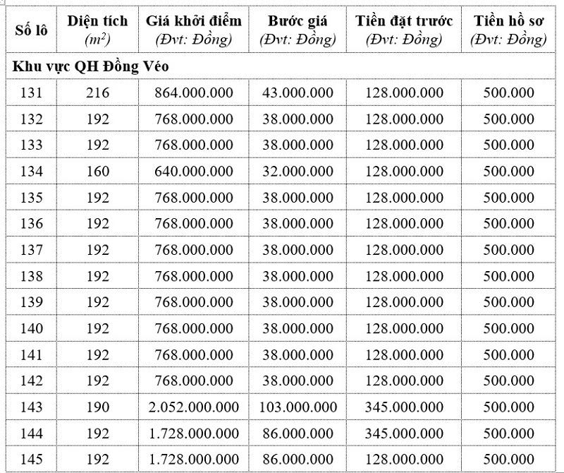 Kể từ thời điểm tháng 9 năm nay, đấu giá đất tại Hà Tĩnh diễn ra hết sức sôi động. Cụ thể, vào ngày 30/9/2021 Hà Tĩnh đã tiến hành đấu giá 15 lô đất tại huyện Đức Thọ. Vị trí khu đất đấu giá bao gồm 15 lô đất tại khu quy hoạch Đồng Véo, xã Tùng Ảnh, huyện Đức Thọ. Diện tích các lô đất từ 160 m2 đến 216 m2/lô với mức giá khởi điểm từ 640 triệu đồng đến 2,052 tỷ đồng/lô.