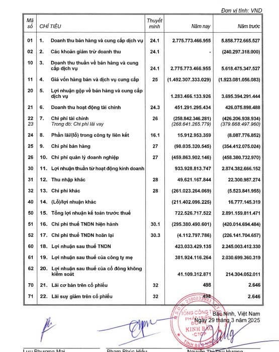 Sau khi công bố báo cáo tài chính năm 2024, hàng loạt doanh nghiệp bất động sản bất ngờ ghi nhận tình trạng lỗ lớn và giảm lãi so với trước kiểm toán. Điển hình nhất là Tổng Công ty Phát triển Đô thị Kinh Bắc (KBC), lợi nhuận sau thuế hợp nhất ghi nhận đạt 423 tỷ đồng, giảm 37 tỷ đồng so với báo cáo tự lập trước đó. Điều này đã làm dấy lên lo ngại trong các cổ đông về khả năng phục hồi và kế hoạch phát triển của công ty trong tương lai.