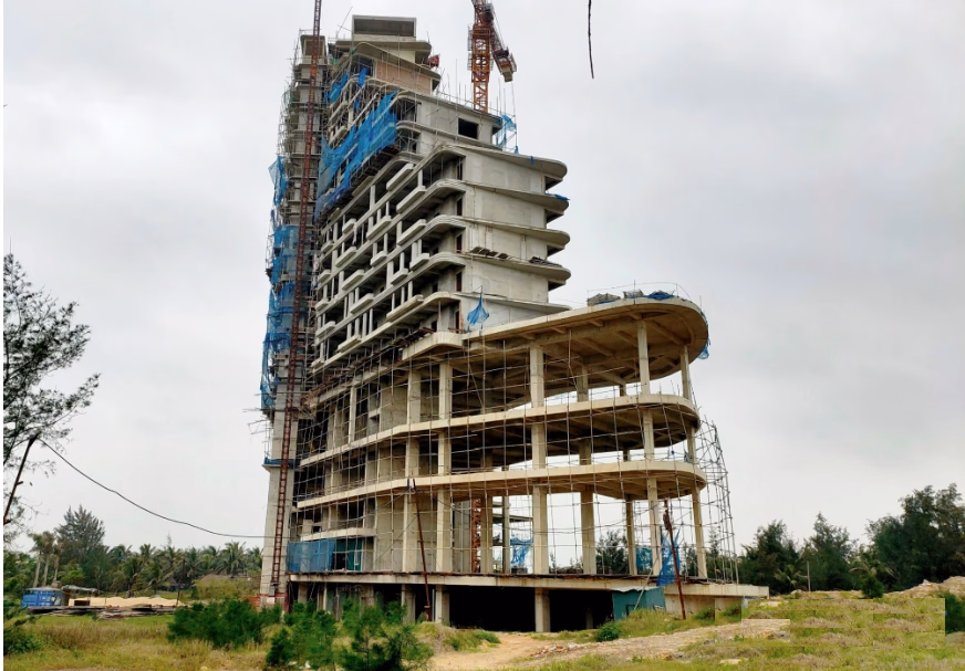 Dự kiến cuối năm 2019, dự án sẽ hoàn thành đưa vào khai thác, sử dụng. Thế nhưng, sau khi hoàn thành thi công xong phần thô của khối khách sạn và các hạng mục công trình biệt thự, toàn bộ dự án đắp chiếu nhiều năm qua.