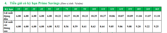 Chẳng hạn tại VPBank mức lãi suất 10%/năm được ngân hàng áp dụng tại sản phẩm tiền gửi có kỳ hạn Prime Savings, áp dụng từ 22/11.