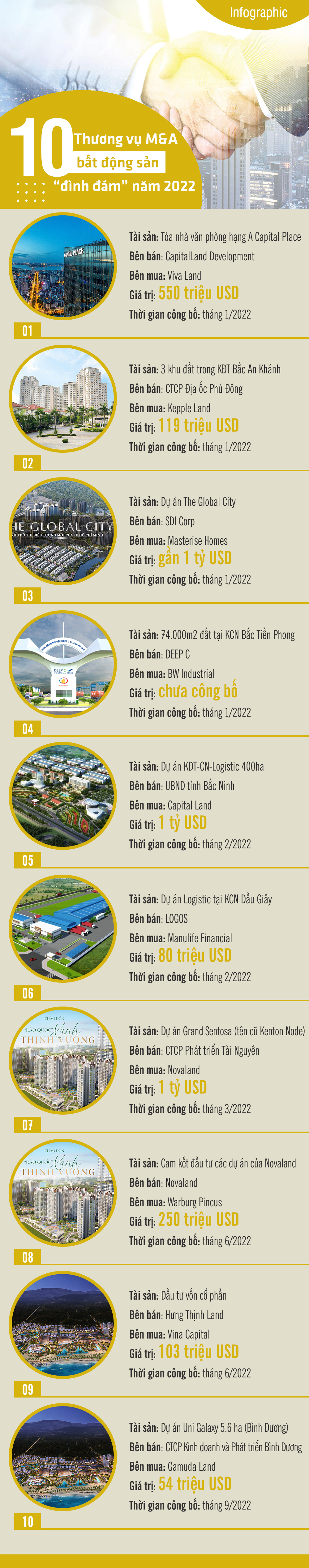 Nhìn lại 10 thương vụ M&A bất động sản “đình đám” trong năm 2022