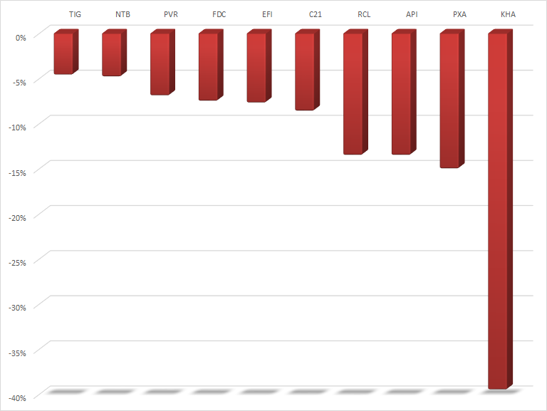 10 cổ phiếu bất động sản giảm giá mạnh nhất tuần từ 17-21/8.