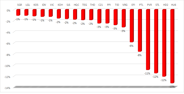 Trong khi đó, HQC của CTCP Địa ốc Hoàng Quân, SJS của CTCP Đầu tư Phát triển Đô thị và Khu Công nghiệp Sông Đà, KDH của CTCP Nhà Khang Điền… đều giảm giá ở tuần vừa qua nhưng mức giảm đều chỉ ở dưới 2%.