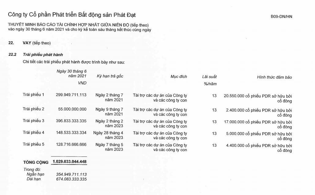 Tính đến 30/6/2021, nợ phải trả của Phát đạt ghi nhận 11.647 tỷ đồng, tăng gần 11,7% so với con số đầu năm. Trong đó, dư nợ trái phiếu là 1.029 tỷ đồng.
