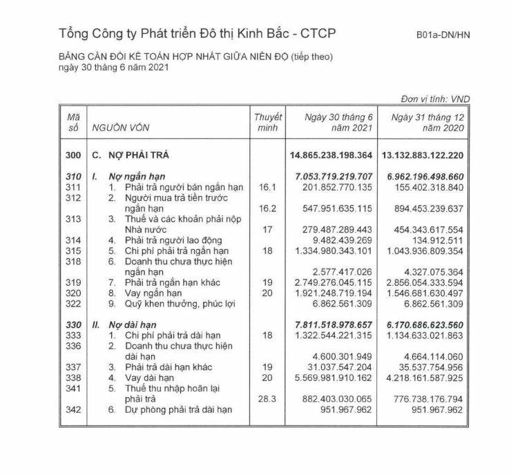 Về tình hình tài chính, tính đến hết ngày 31/3 tổng nợ phải trả của Kinh Bắc gần 14.865 tỷ đồng, tăng gần 13% so với đầu năm.