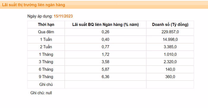Lãi suất liên ngân hàng đã giảm liên tiếp trong hơn 3 tuần qua. Hiện lãi suất liên ngân hàng kỳ hạn qua đêm đã giảm về mức thấp nhất kể từ cuối tháng 9.