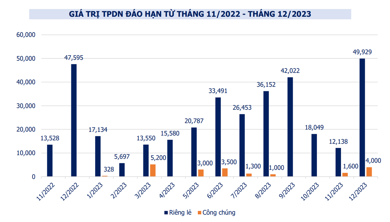 Dữ liệu thống kê cho thấy giá trị trái phiếu riêng lẻ đến hạn thanh toán trong quý IV/2022 và năm 2023 vào khoảng 60.000 tỷ đồng và 260.000 tỷ đồng (tương đương 3,81% GDP năm 2021). Lượng trái phiếu đến hạn này đang và sẽ tạo áp lực lớn tới thanh khoản thị trường trong bối cảnh năng lực tài chính của doanh nghiệp đang suy giảm và thực thi chính sách tiền tệ thận trọng và chắc chắn.