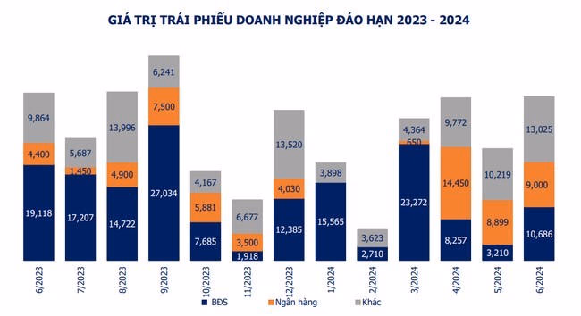 Cũng theo số liệu từ VBMA, trong 6 tháng còn lại của năm 2023, tổng giá trị trái phiếu sẽ đáo hạn là 158.500 tỷ đồng. Trong đó, phần lớn giá trị trái phiếu sắp đáo hạn thuộc nhóm bất động sản với 80.952 tỷ đồng, chiếm 51%, theo sau là nhóm ngân hàng với 27.261 tỷ đồng, chiếm 17,2%.
