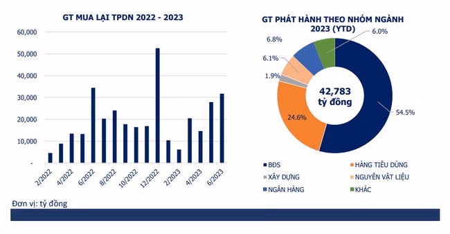 Ở chiều ngược lại, tính đến cuối tháng 6, các doanh nghiệp đã thực hiện mua lại 31.591 tỷ đồng trái phiếu, đạt mức cao nhất kể từ đầu năm đến nay và tăng gần 39% so với giá trị mua lại hồi tháng 5. Tổng giá trị trái phiếu đã được các doanh nghiệp mua lại trước hạn lũy kế từ đầu năm đến nay đạt 110.448 tỷ đồng, tăng 39% so với cùng kỳ năm 2022.