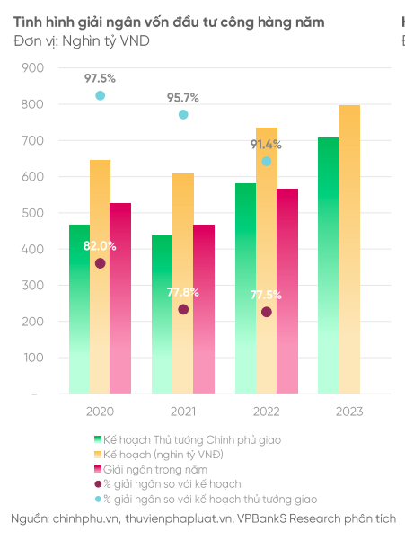 Theo VPBankS kỳ vọng nhu cầu thép sẽ tăng mạnh mẽ trở lại khi đầu ra là thị trường bất động sản hồi phục từ năm 2024. VPBankS cũng nhận định, đầu tư công sẽ trở thành phao cứu sinh kích cầu hoạt động xây dựng. Cụ thể, năm 2023, Bộ Tài chính công bố kế hoạch giải ngân từ đầu tư công bao kỷ lục với con số hơn 796 nghìn tỷ VND và kế hoạch do chính phủ giao hơn 707 nghìn tỷ đồng.