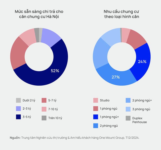 Ông Trần Minh Tiến, Giám đốc Trung tâm Nghiên cứu Thị trường & Am hiểu Khách hàng One Mount Group chia sẻ: “Trong năm 2024, giá bất động sản tại Hà Nội tăng nhanh, đặc biệt phân khúc căn hộ chung cư đã ghi nhận mức tăng lên đến 54% so với năm 2023. Sự biến động này khiến nhiều khách hàng nhận thức rõ ràng rằng nếu không đưa ra quyết định sớm, giá nhà có thể tiếp tục leo thang, đồng nghĩa với việc họ có thể bỏ lỡ những cơ hội đầu tư giá trị”.