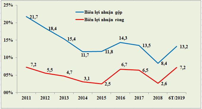 Đặc biệt năm 2018 khi doanh thu cán mốc kỷ lục thì biên lợi nhuận gộp của An Phát ghi nhận thấp nhất kể từ năm 2011.