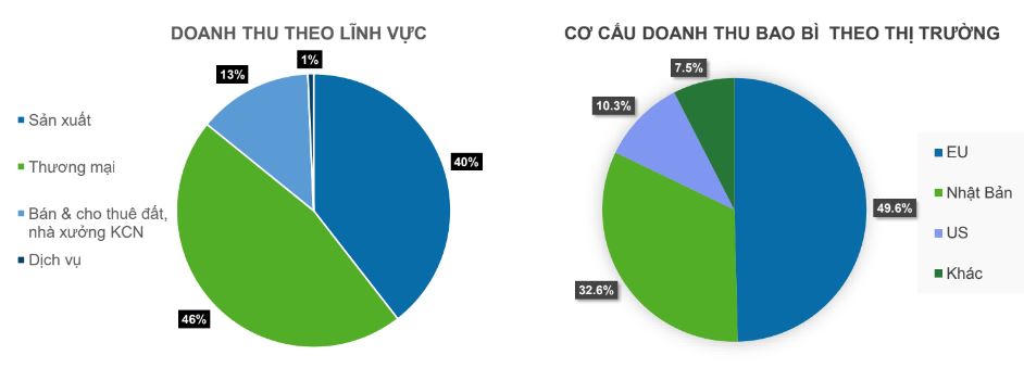Hết quý II, hoạt động sản xuất đóng góp khoảng 40% vào danh thu, thương mại chiếm tỷ trọng lớn nhất là 46% còn bán, cho thuê đất và nhà xưởng khu công nghiệp góp 13%.