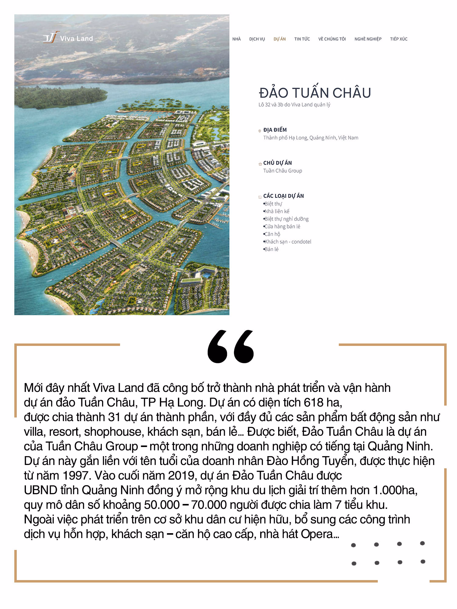 Trên Website của mình, Viva Land cũng tự giới thiệu “đang sở hữu 1,500ha đất tại Hà Nội và TP Hồ Chí Minh, với hơn 18.000 căn hộ. Cùng với đội ngũ lãnh đạo có hơn 30 năm kinh nghiệm trên thị trường bất động sản trong nước và khu vực, quản lý giá trị tài sản hơn 5 tỷ USD”.