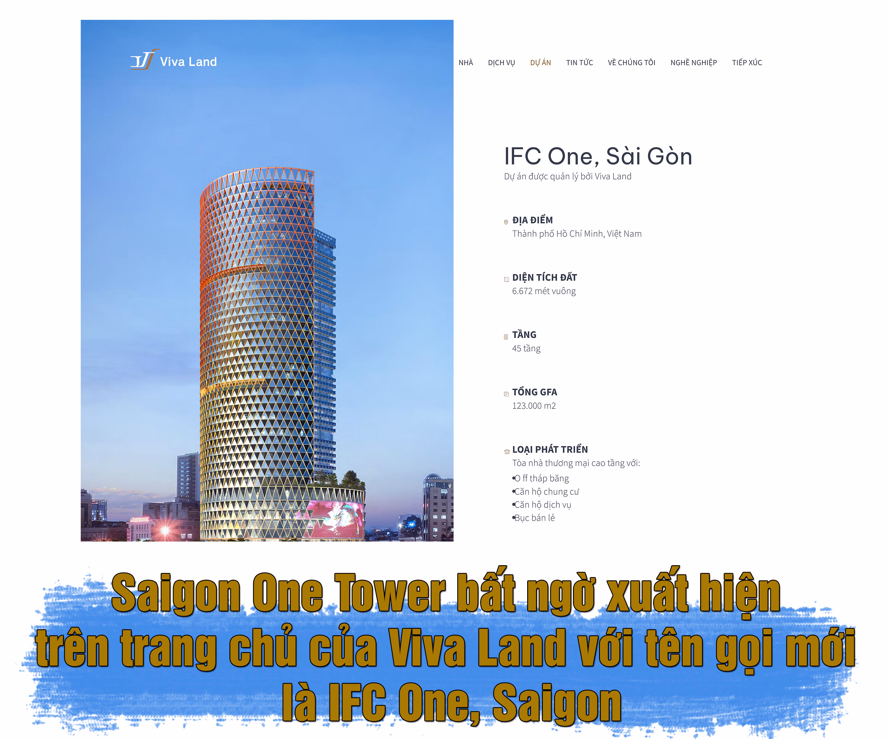 Thực hư về mối lương duyên giữa Di sản quốc tế Hồ Tràm và Saigon One Tower chưa đi đến đâu thì một cái khác bất ngờ xuất hiện với vai trò nhà phát triển dự án trên, đó là CTCP Đầu tư & Phát triển Viva Land (Viva Land). Tuy nhiên Saigon One Tower được Viva Land giới thiệu với cái tên hoàn toàn mới là “IFC One, Saigon”.