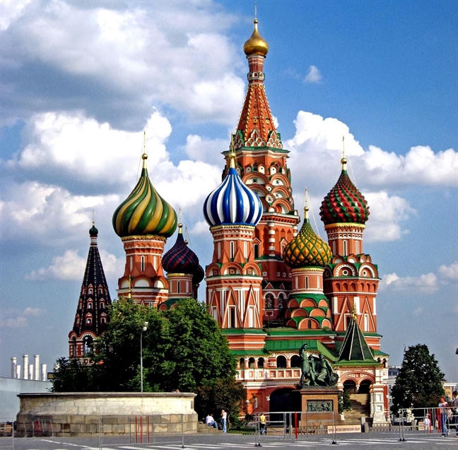 Thánh đường Saint Basils, hay nhà thờ thánh Basil đặc biệt thu hút bởi hình dạng độc đáo giống như một ngọn lửa, cùng khối kiến trúc nhiều màu sắc rực rỡ với những ngôi tháp chóp hình củ hành, trên đỉnh có dấu thập thánh giá xây bằng gạch đỏ nổi bật.
