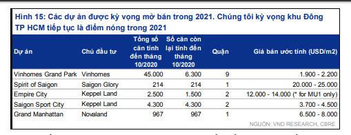 Theo báo cáo Bất động sản Nhà ở vừa được VNDirect công bố, phân khúc nhà ở cao cấp dự báo sẽ được chứng kiến mức giá mới từ dự án The Spirit of Saigon (Khu Tứ giác Bến Thành) với 20.000 - 25.000 USD/m2 (tương đương khoảng 460 - 570 triệu đồng/m2), phá vỡ kỷ lục về giá bán của các dự án trước đó.