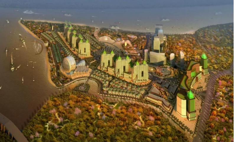 Với tổng vốn dự kiến 6 tỷ USD, các nhà đầu tư sẽ biến dự án thành nơi hội tụ của những nét kiến trúc độc đáo mang tầm cỡ quốc tế và là “lá phổi xanh” hòa quyện vào không gian sông nước sinh thái lý tưởng với vị trí đặc biệt của dự án ngay ngã ba sông Sài Gòn và sông Nhà Bè. Ảnh: Phối cảnh tổng thể của siêu dự án 6 tỷ USD.