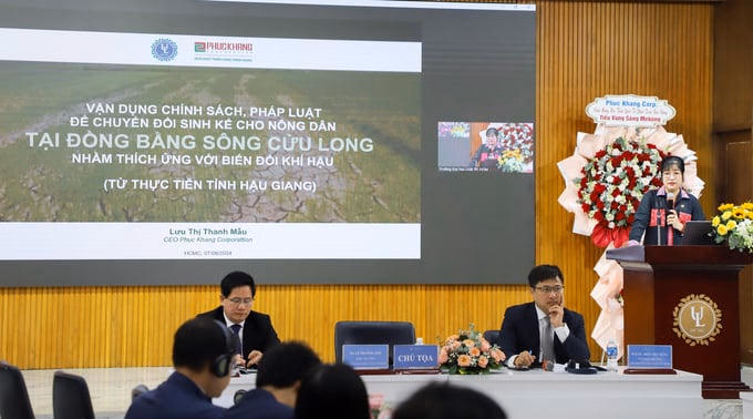 Đây là 2 trong số các kiến nghị được đưa ra tại Hội thảo khoa học quốc tế “Phát triển bền vững tiểu vùng sông Mekong” ngày 07/06/2024. Kiến nghị đến từ bài tham luận: “Vận dụng chính sách, pháp luật để chuyển đổi sinh kế cho nông dân tại đồng bằng sông Cửu Long (ĐBSCL) nhằm thích ứng với biến đổi khí hậu – từ thực tiễn tỉnh Hậu Giang” của CEO Lưu Thị Thanh Mẫu – Phó Chủ tịch Hội Doanh nhân trẻ Việt Nam, Phó Chủ tịch Hiệp hội Bất động sản TP.HCM, Tổng giám đốc Phuc Khang Corporation. Ngoài ra, còn rất nhiều giải pháp hữu ích khác liên quan đến khai thác tài nguyên thiên nhiên, phát triển bền vững, hoạt động thương mại quốc tế, đầu tư tại khu vực ĐBSCL được các diễn giả trình bày trong 14 tham luận tại hội thảo.