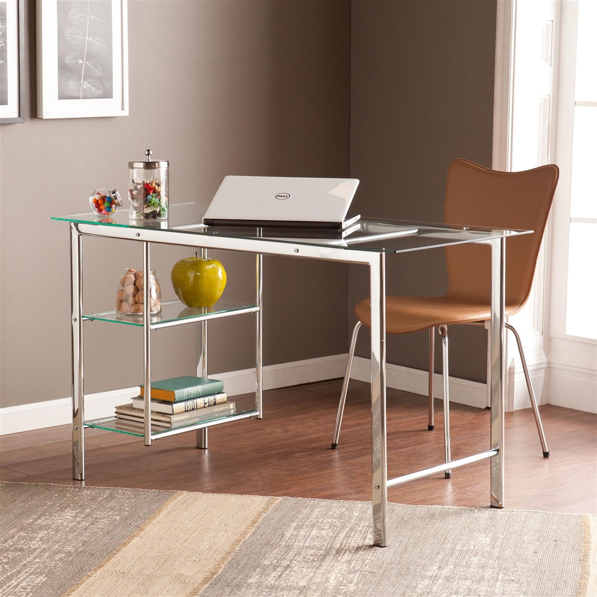 Có nhiều người ưa chuộng việc sử dụng kính trong phối đồ trang trí nhà cửa, nên góc làm việc tạo nên từ vật liệu bằng kính cũng là điều thường thấy. Mặt kính trong suốt sẽ tạo cho chúng ta cảm giác không gian được mở rộng thêm kèm theo đó là sự sang trọng và quý phái đảm bảo gia chủ sẽ ưng mắt ngay từ ánh nhìn đầu tiên.