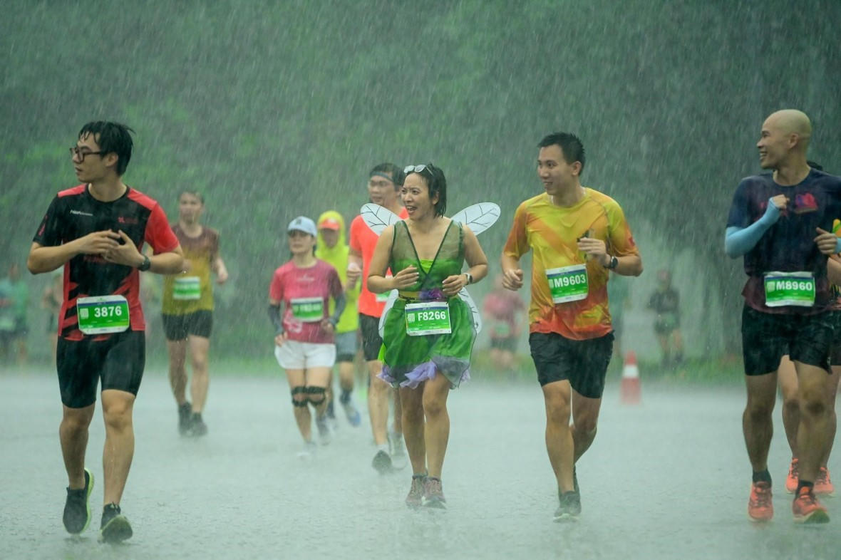 Những con đường rợp cỏ hoa, bố mẹ nắm tay con cái cùng chạy bộ, hay cơn mưa rào đầu hạ trút xuống bất ngờ tạo nên điểm nhấn khó quên ở giải Ecopark Marathon 2023.