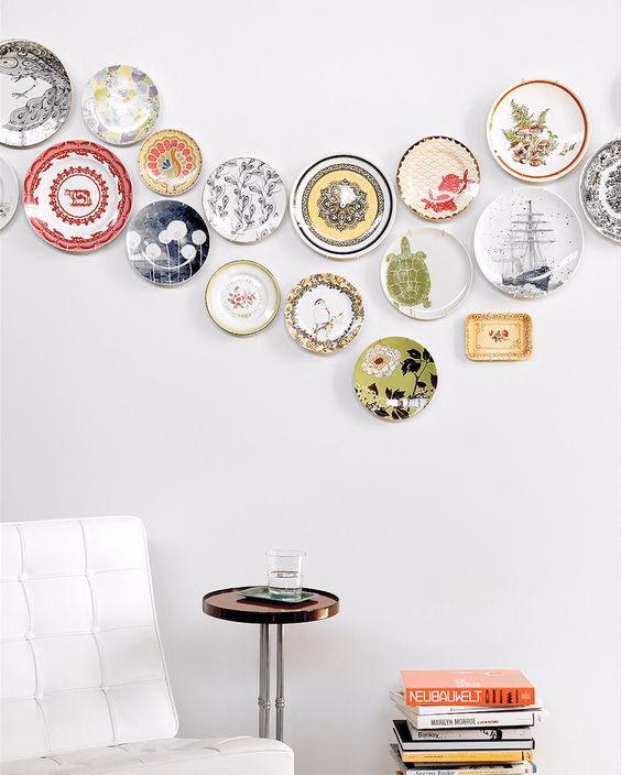 Hãy thử tham khảo việc trang trí căn phòng bằng việc treo những chiếc đĩa độc đáo lên tường, có thể đó sẽ là khu vực thú vị nhất trong ngôi nhà của bạn. Lựa chọn vị trí đối xứng để có cái nhìn gắn kết hơn. Một dãy đĩa trên tường của bạn sẽ không chỉ đẹp mắt mà còn có thể trở thành nơi check-in tuyệt đẹp khi bạn có bạn bè đến chơi.