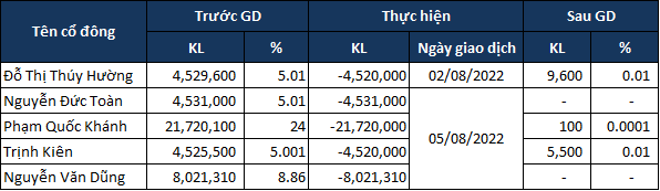 Cùng lý do, ông Nguyễn Hoàng Giang cũng xin rút khỏi vai trò thành viên HĐQT. Ngoài ra, bà Phạm Thị Thu Phương cũng có đơn từ nhiệm chức danh Thành viên Ban kiểm soát kể từ ngày 30/8 vì lý do cá nhân.