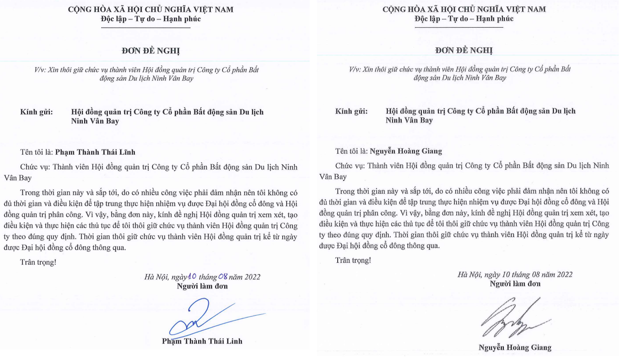 Ngoài ra, đính kèm theo nghị quyết là đơn từ nhiệm của 2 thành viên HĐQT và một thành viên ban kiểm soát. Đó là ông Phạm Thành Thái Lĩnh – thành viên HĐQT kiêm Tổng giám đốc công ty đã gửi đơn xin từ nhiệm vị trí thành viên HĐQT với lý do thời gian tới có nhiều công việc phải đảm nhận, không có đủ điều kiện tập trung thực hiện nhiệm vụ được cổ đông và HĐQT phân công.