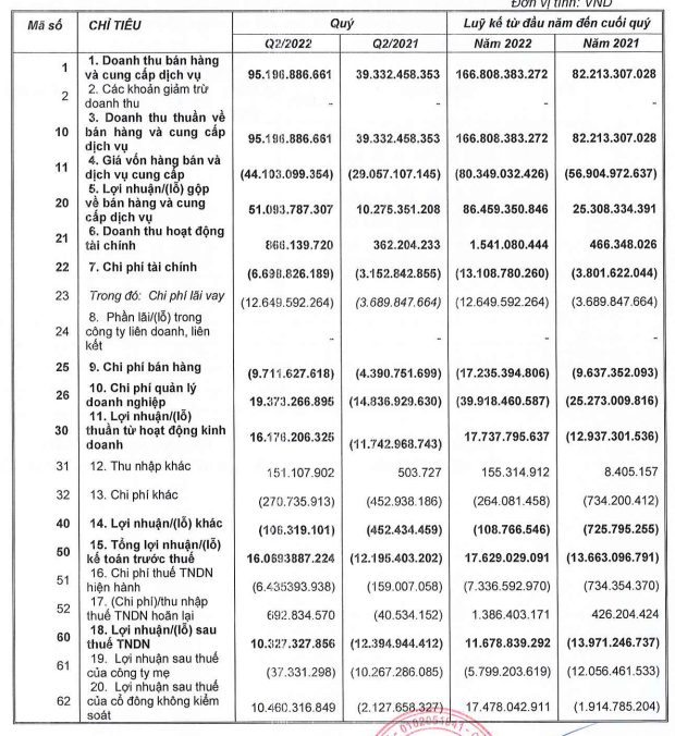 Lũy kế 6 tháng đầu năm, NVT thu về 166 tỷ đồng từ doanh thu, tăng gấp đôi so với nửa đầu năm ngoái. Lợi nhuận sau thuế của doanh nghiệp đạt 11.6 tỷ đồng.