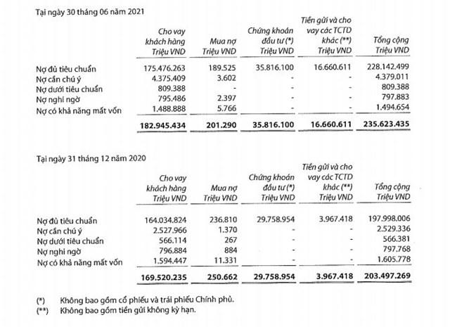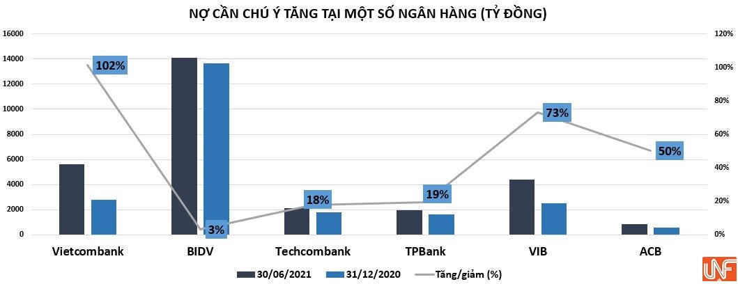Tại thời điểm 30/6/2021, nợ cần chú ý (nợ nhóm 2 - với khoản vay quá hạn 10-90 ngày) lại bất ngờ tăng vọt so với đầu năm.