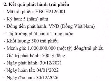 Theo nghị quyết HĐQT, lô trái phiếu này phát hành theo hình thức không chuyển đổi, không kèm chứng quyền, được đảm bảo bằng cổ phiếu HBC của công ty.