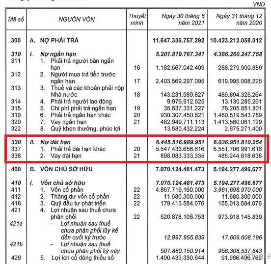 Đáng lưu ý, tại thời điểm 30/6/2021, nợ dài hạn tại PDR lớn gấp 1,6 lần tài sản dài hạn (4.098 tỷ đồng).