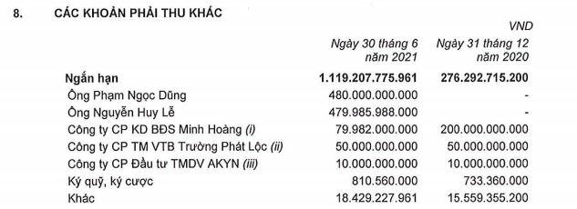 Ngoài ra, các khoản phải thu ngắn hạn tại PDR tính đến 30/6/2021 tăng 47% so với đầu năm, lên mức 2.228 tỷ đồng. Trong đó, phải thu ngắn hạn của khách hàng tăng vọt 115%, ghi nhận hơn 365 tỷ đồng. Các khoản phải thu ngắn hạn khác cũng cao gấp 4 lần so với đầu năm, lên mức 1.119 tỷ đồng.
