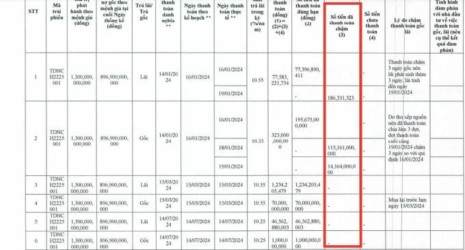 Được biết, Công ty cổ phần Trung Thuỷ Đà Nẵng mã trái phiếu với giá trị phát hành lên đến 1.300 tỷ đồng. Tuy nhiên, doanh nghiệp này có khoản chậm thanh toán đúng hạn.