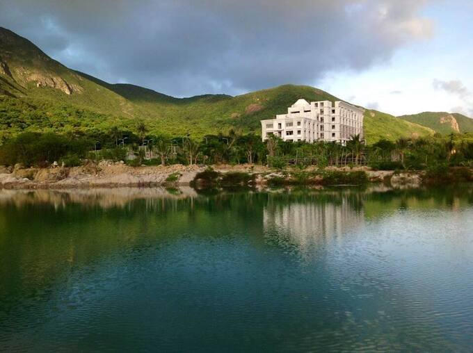 Tuy nhiên, đến tháng 3/2014, dự án mới chỉ hoàn thành được 95% giai đoạn 1, gồm phần thô khối khách sạn 5 tầng 125 phòng, quầy bar, quầy lưu niệm, nhà hàng, hội trường; phủ xanh 70% diện tích đất được giao bằng các loại cây ăn quả và cây cho bóng mát, hoa, thảm thực vật; hoàn thành 90% hệ thống giao thông nội bộ; san lấp nền hồ bơi 4.000m2, xây bờ kè chắn sóng dài 300m, dọn đá cải tạo mặt biển làm bãi tắm… Bên cạnh đó, dự án cũng xảy ra tranh chấp giữa ngân hàng và chủ đầu tư.
